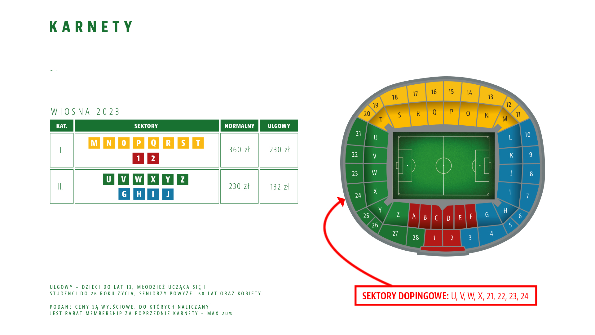 - Klub podtrzymuje rabat membership, w którym za każdy nabyty karnet kibic otrzymuje 1% rabat na rundę, a za karnet na cały sezon 2%. Maksymalny poziom zniżki, jaką można zgromadzić, to 20%. Zniżka membership wykorzystywana jest do nabycia kolejnego karnetu.