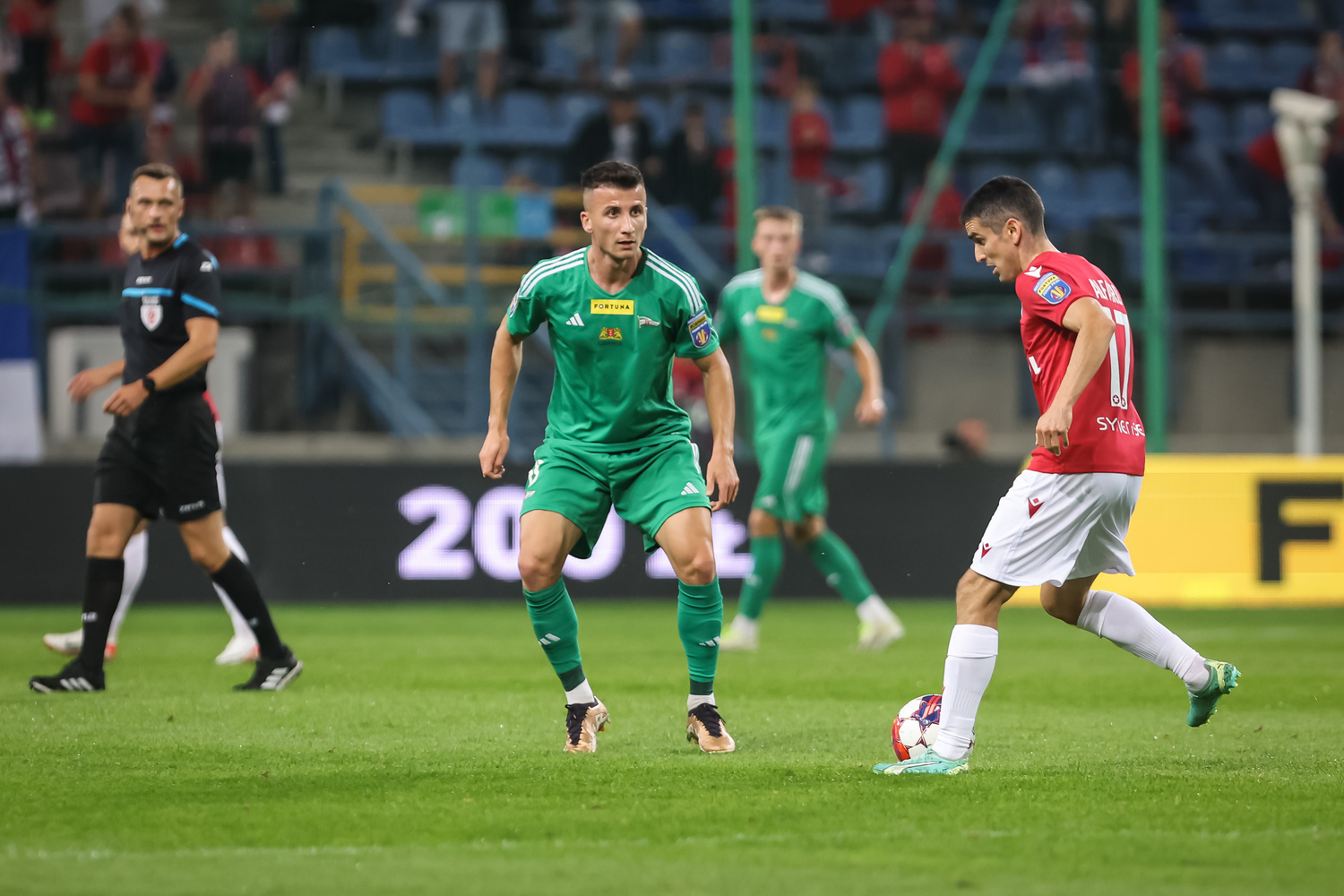W 59 minucie trener Grabowski uznał, że czas na stanowcze działania. Dokonał poczwórnej zmiany. Luis Fernandez zmienił Dominika Piłę, Thomas Bobcek wszedł za Łukasza Zjawińskiego, Ivan Zhelizko za Rifeta Kapicia, zaś za Miłosza Kałahura – Conrado.