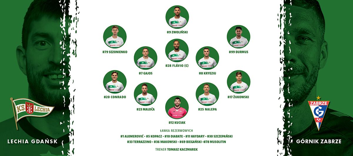 Poznaliśmy wyjściową jedenastkę Biało-Zielonych na mecz z Górnikiem Zabrze. Spotkanie rozpocznie się o godzinie 15.30.