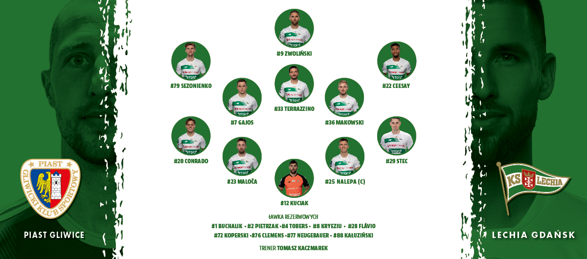Poznaliśmy wyjściowy skład Biało-Zielonych na spotkanie 25. kolejki PKO BP Ekstraklasy, w którym lechiści zmierzą się z Piastem Gliwice. Początek spotkania zaplanowano na 17.30.