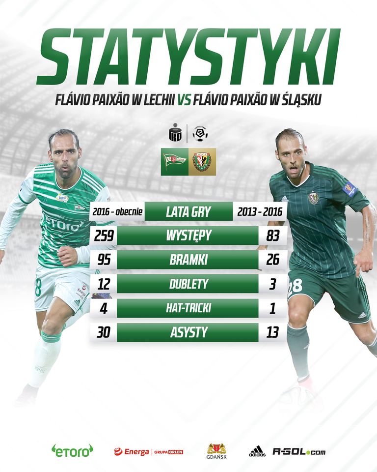 Na pewno postacią, która łączy oba kluby jest Flávio Paixão. Portugalczyk swoją przygodę z polską piłką rozpoczynał od Śląska Wrocław, a następnie seryjnie zdobywał już bramki w barwach Lechii.