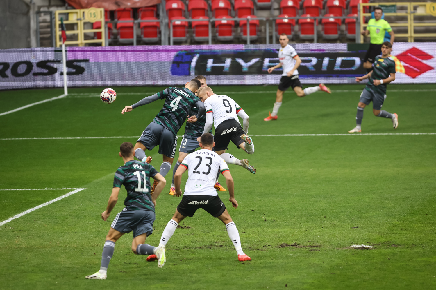 W 8. minucie odpowiedzieli goście. Przy rozegraniu piłki w polu karnym, Thomas Bobcek dostrzegł w gęstwinie obrońców GKS-u Camilo Menę. Kolumbijczyk podryblował, przełożył i huknął… W gracza z Tychów, który ratował sytuację rozpaczliwym wślizgiem.